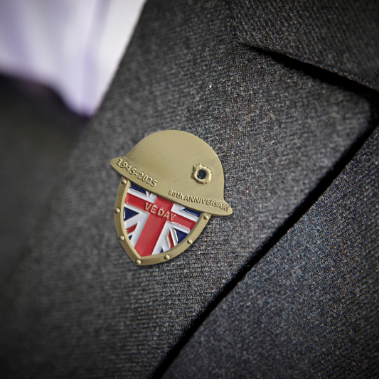 VE Day 80th Anniversary Commemorative Helmet Shield Pin Badge