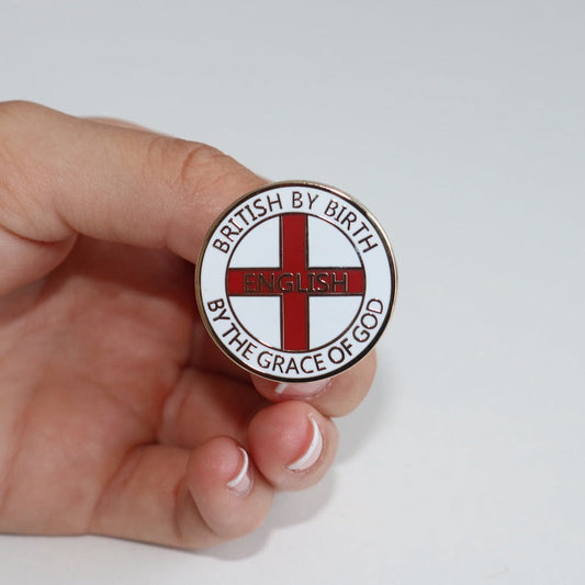British By Birth English By The Grace of God Pin Badge - White & Gold