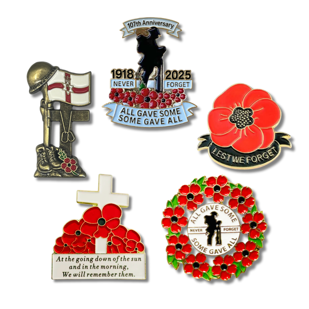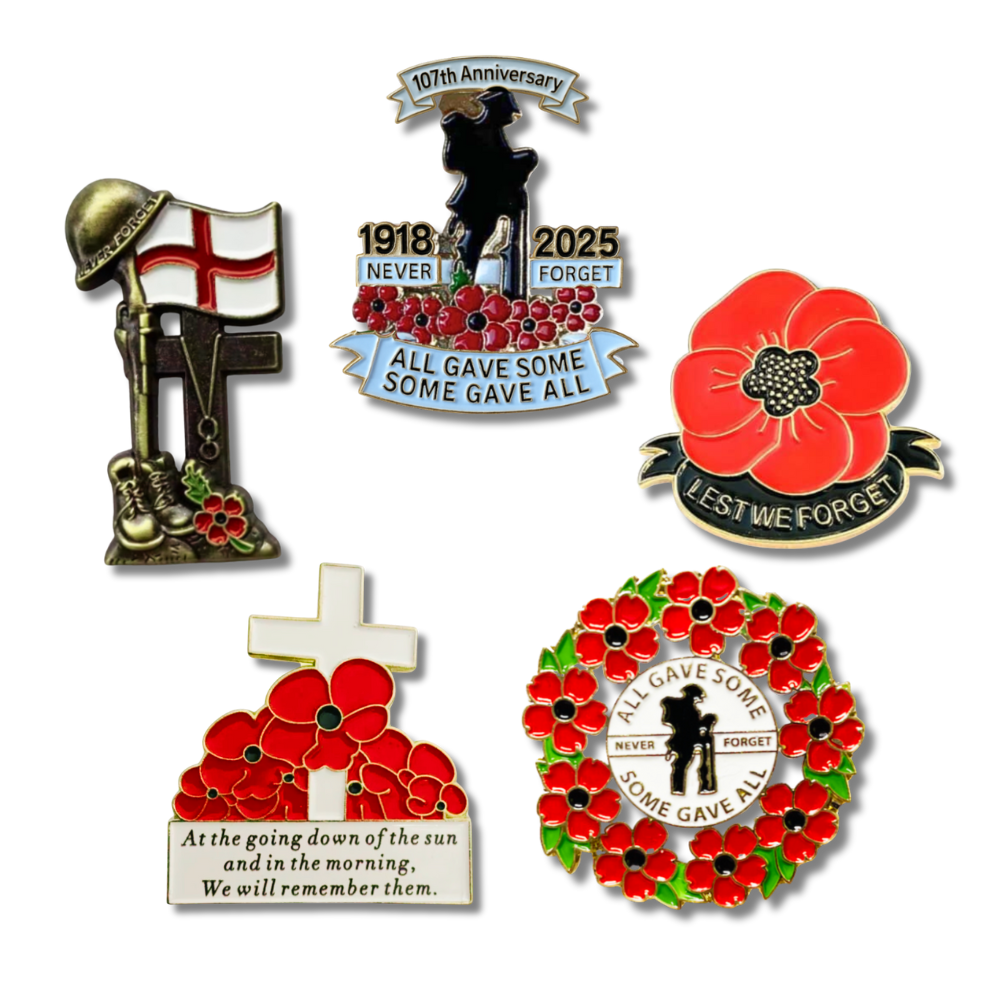 This special collection brings together five meaningful pins and brooches, carefully chosen to symbolise sacrifice, courage, and remembrance.