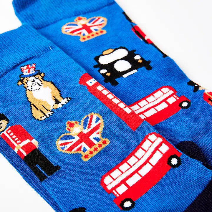 Featuring iconic British landmarks and motifs, these socks exude a patriotic sense of refinement and taste that is sure to add an eye-catching flourish to any ensemble, perfect for everyday wear or special occasions.